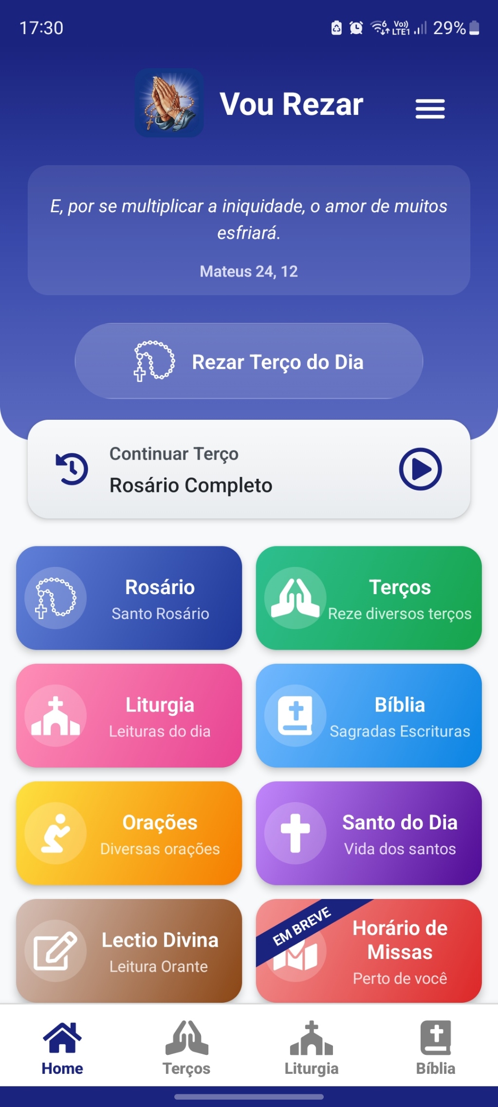 Seu companheiro espiritual completo. Liturgia diária, rosário, terços, lectio divina, novenas, orações e muito mais para fortalecer sua fé a cada dia.
